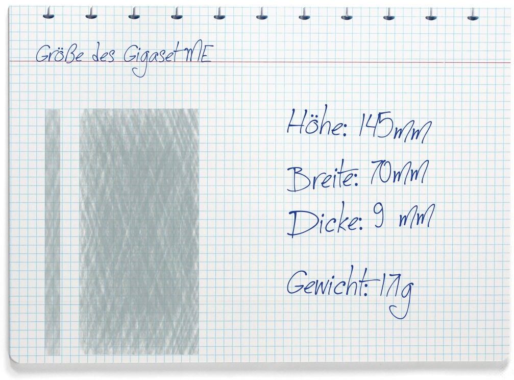 Das ME ist 145 mm hoch, 70 mm breit und ca. 9 mm dick. Die meisten Smartphones sind dicker.