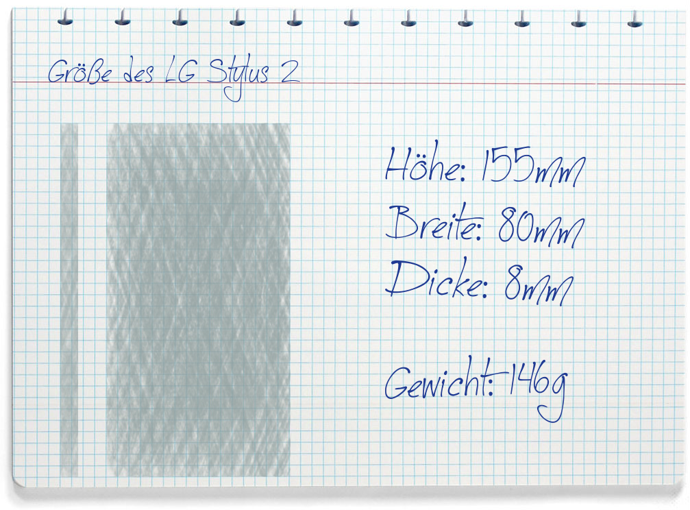 Das Stylus 2 hat folgende Abmessungen: 155mm x 80mm x 8mm (Höhe/Breite/Dicke). Die meisten Smartphones sind dicker.