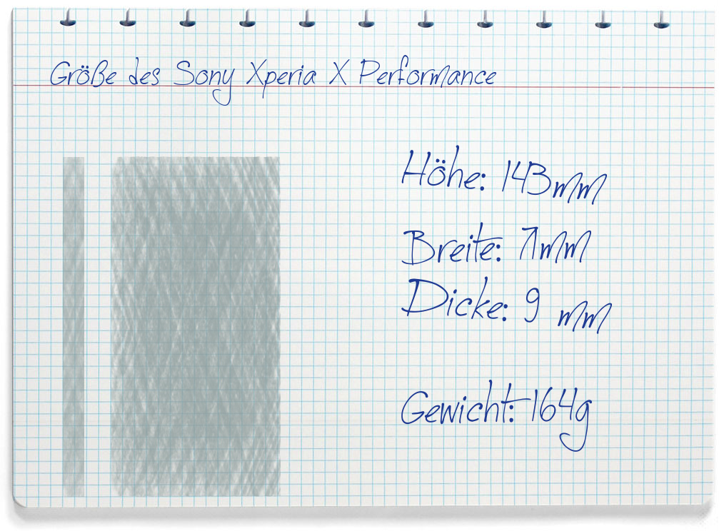 Das Xperia X Performance ist 143 mm hoch, 71 mm breit und ca. 9 mm dick. Die meisten Smartphones sind dicker.
