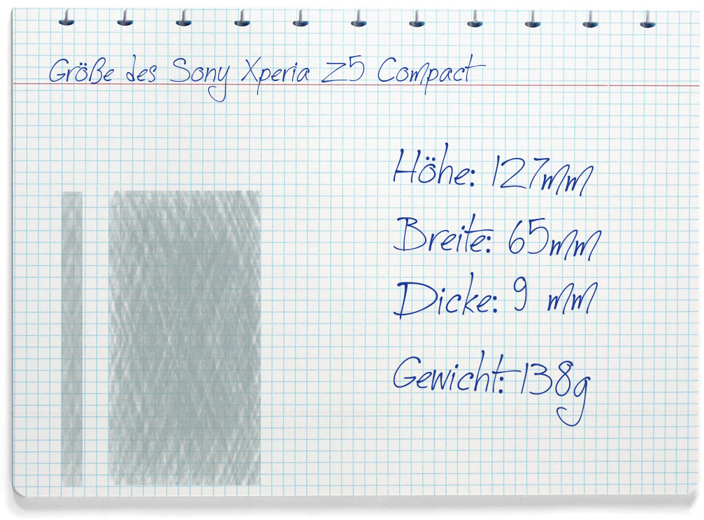 Das Xperia Z5 Compact ist ca. 127 mm hoch, 65 mm breit und etwa 9 mm dick. Die meisten Smartphones sind dicker.