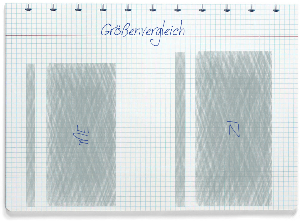 Das größere Smartphone ist das ZUK Z1. Das ME ist ca. 145 mm hoch, 70 mm breit und ungefähr 9 mm dick. Das Z1 ist 157 mm hoch, 77 mm breit und ca. 10 mm dick.