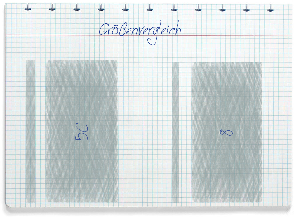 Auf das Display des 5C passen 1.080 x 1.920 Pixel. Die Auflösung beträgt beim 8 auch 1.080 x 1.920 Pixel.