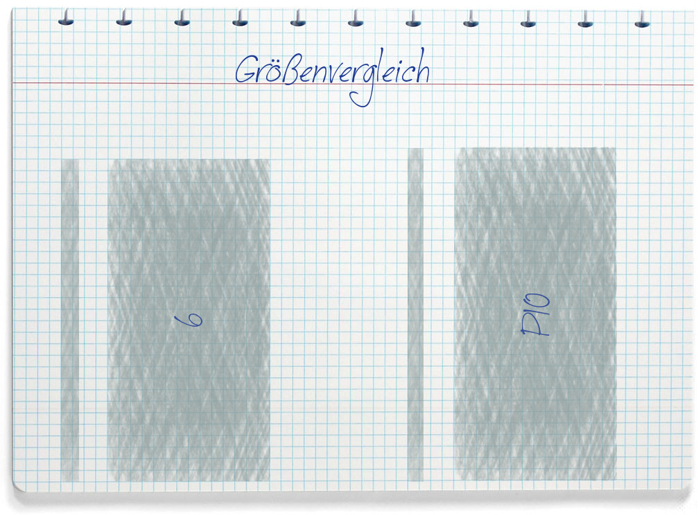 Vom Auslösen bis zum fertigen Foto benötigen die Kameras etwa 1,14 Sekunden (6), bzw. 0,86 Sekunden (6). 3,8 mm beträgt die kleinste Brennweite beim 6, beim P10 sind es 4,0 mm.
