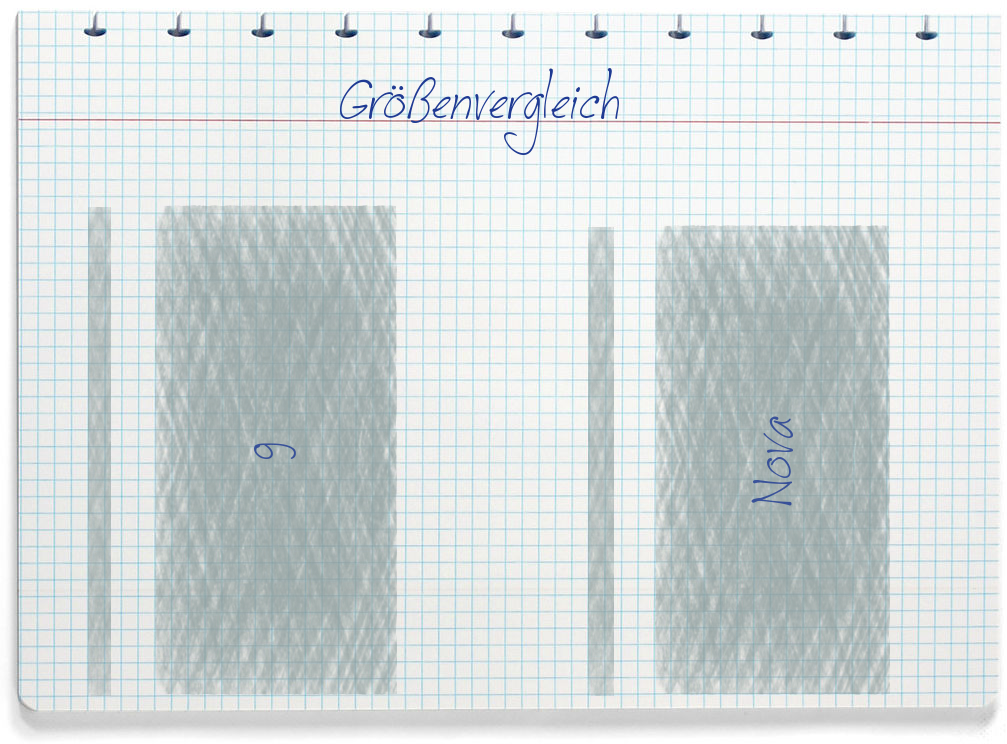 Die Auflösung beträgt beim 9 1.920 x 1.080 Pixel. Auf das Display vom Nova passen 1.080 x 1.920 Pixel.