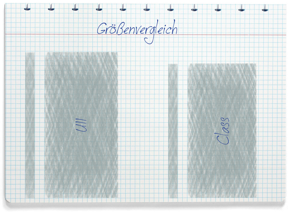 Das LG Class ist kompakter als das HTC U11: Das U11 ist ca. 154 mm hoch, 77 mm breit und ungefähr 10 mm dick. Das Class ist 142 mm hoch, 72 mm breit und ca. 10 mm dick.