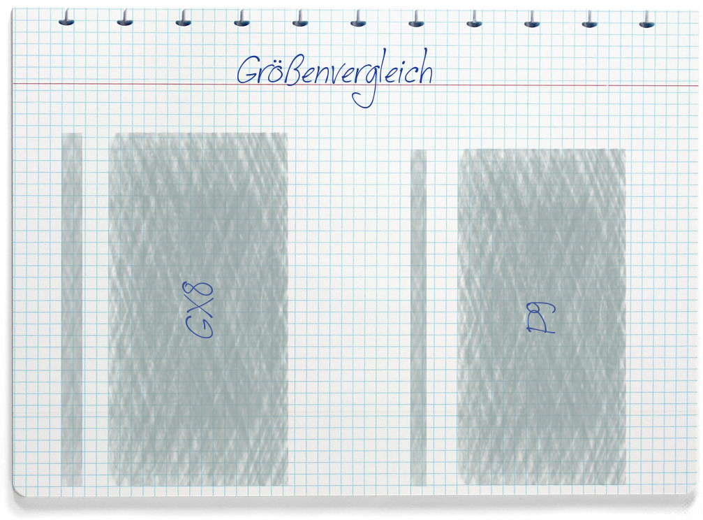 Das Huawei P9 ist kompakter als das Huawei GX8: Das GX8 hat diese Abmessungen: 152mm x 77mm x 9mm (Höhe/Breite/Dicke). Das P9 ist 145 mm hoch, 72 mm breit und ca. 7 mm dick.
