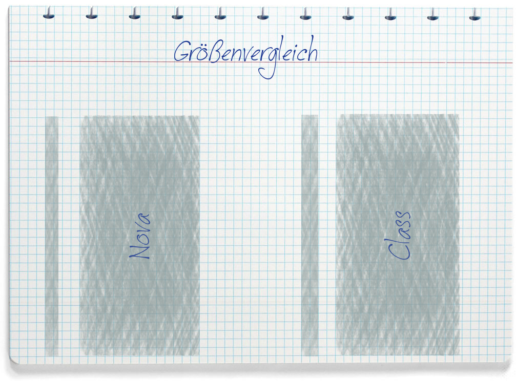 Auf das Display des Nova passen 1.080 x 1.920 Pixel. Die Auflösung des Class: 1280 x 720 Pixel.