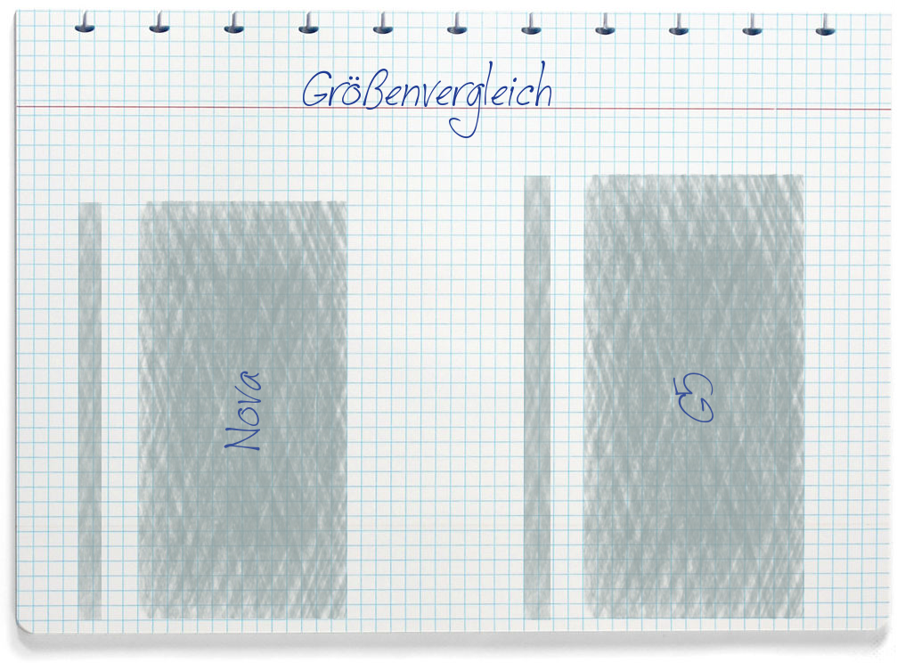 Das kleinere der beiden Smartphones ist das Huawei Nova: Das Nova ist ca. 141 mm hoch, 70 mm breit und ungefähr 8 mm dick. Das G5 hat folgende Abmessungen: 150mm x 74mm x 9mm (Höhe/Breite/Dicke).