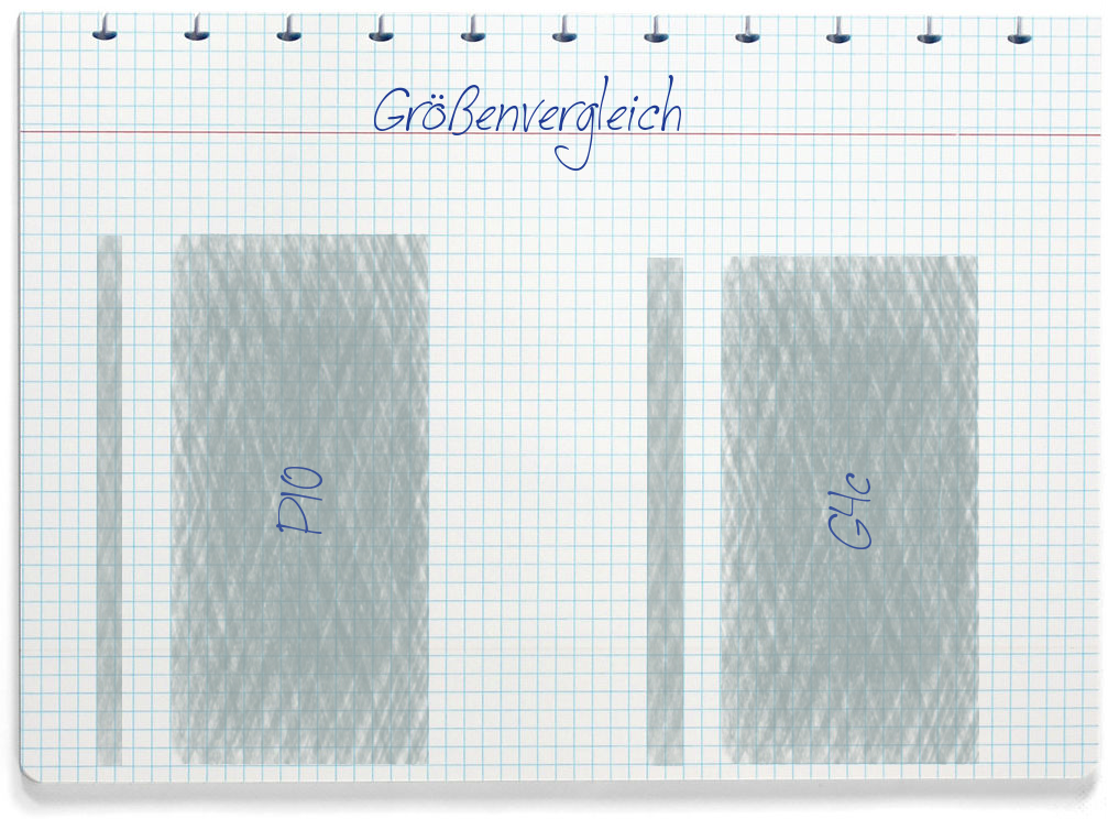 Vom Auslösen bis zum fertigen Foto benötigen die Kameras etwa 0,86 Sekunden (P10), bzw. 0,71 Sekunden (P10). Die kleinste Brennweite: 4,0 mm (P10) / 3,2 mm (G4c).