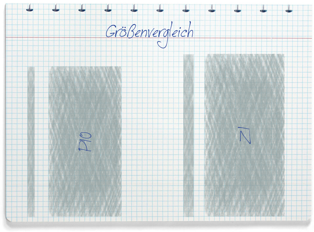 Das größere Smartphone ist das ZUK Z1. Das P10 ist etwa 145 mm hoch, 70 mm breit und ca. 7 mm dick. Das Z1 hat folgende Abmessungen: 157mm x 77mm x 10mm (Höhe/Breite/Dicke).