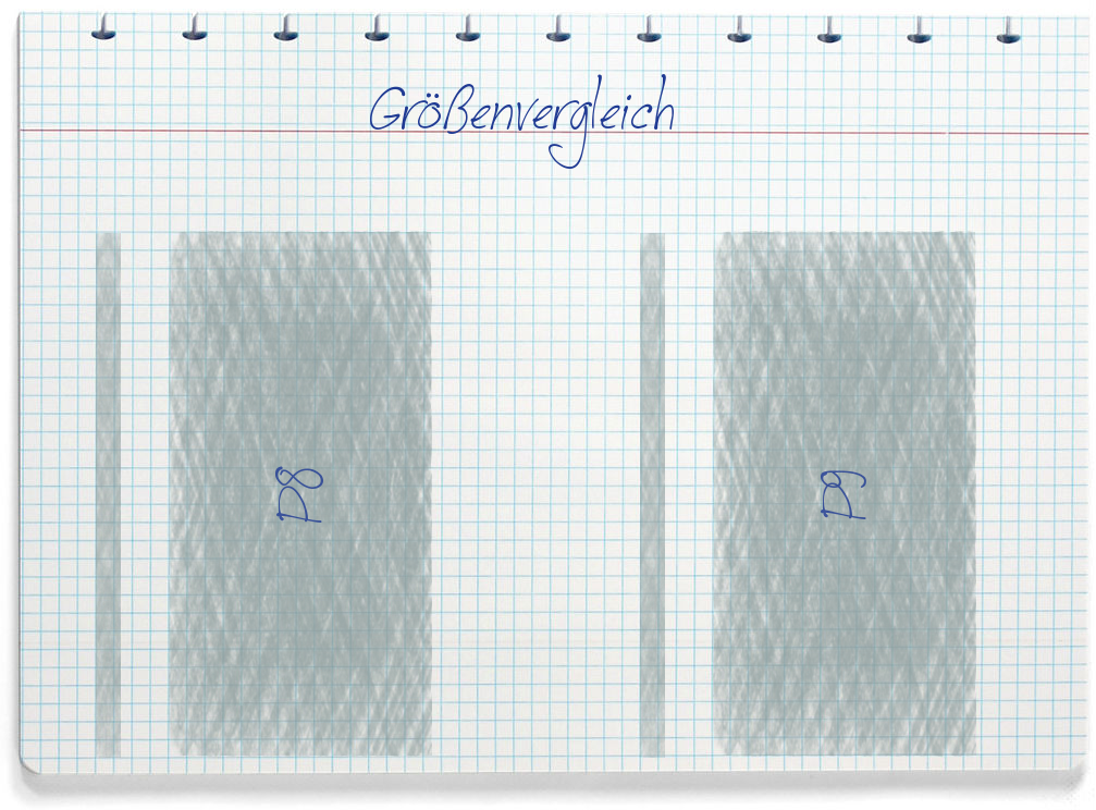 Beide Geräte sind etwa gleich groß: Das P8 hat folgende Abmessungen: 145mm x 72mm x 7mm (Höhe/Breite/Dicke). Das P9 ist etwa 145 mm hoch, 72 mm breit und ca. 7 mm dick.