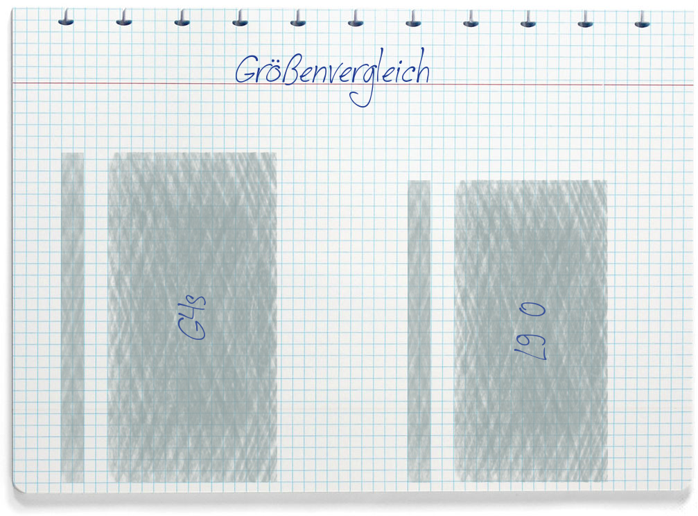Das LG L90 ist kleiner als das LG G4s. Das G4s hat folgende Abmessungen: 143mm x 73mm x 10mm (Höhe/Breite/Dicke). Das L90 ist ungefähr 131 mm hoch, 66 mm breit und ca. 10 mm dick.